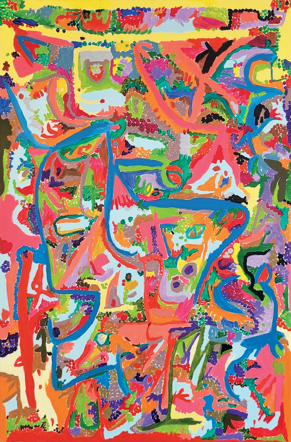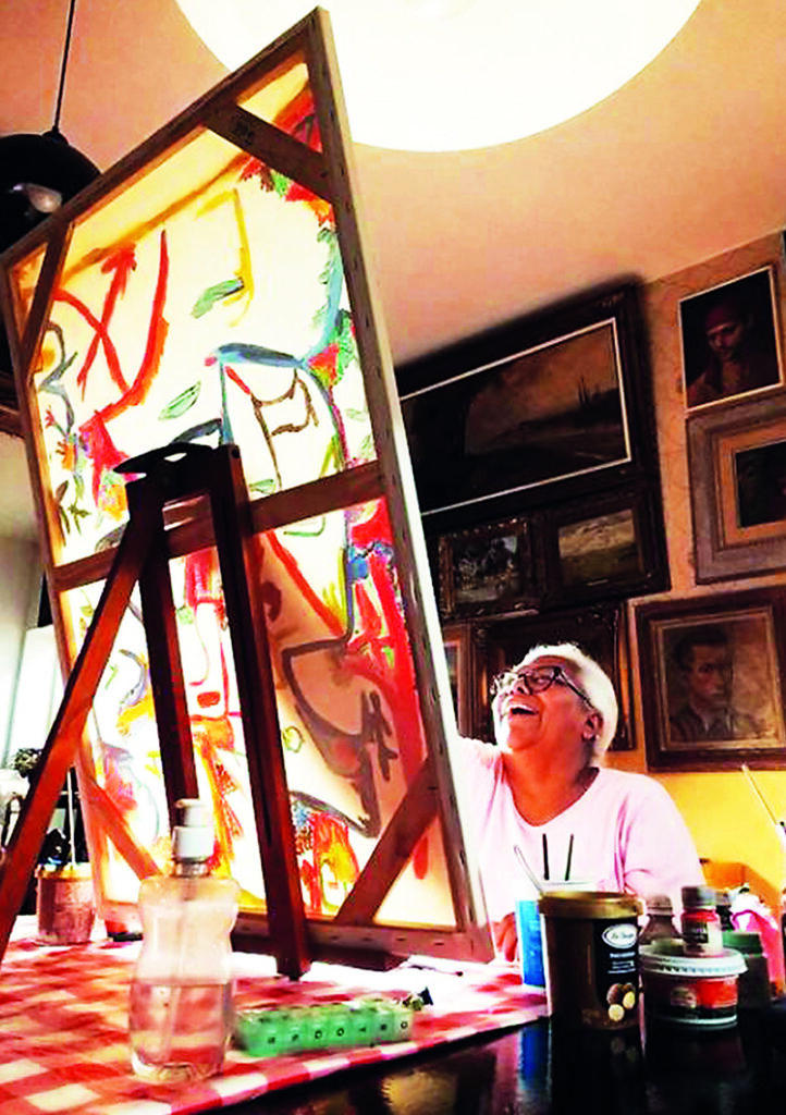 “A Gloria é um sol. Vejam a foto dela frente a tela: luz criativa projetando um universo de cores variado, intenso e iluminado. É focada nos espaços que pretende ocupar na tela, passo a passo um elemento, um contorno, uma cor.”